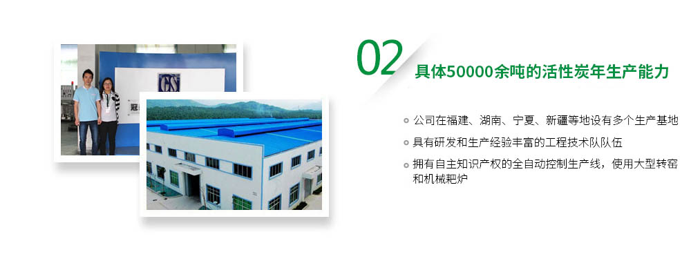 廣東冠森炭業(yè)科技有限公司是集活性炭研發(fā)、生產(chǎn)、銷售為一體的企業(yè)。注冊資金2180萬元人民幣具有研發(fā)和生產(chǎn)經(jīng)驗豐富的工程技術(shù)隊伍,并與高校的活性炭專家緊密合作,專業(yè)從事各類專用活性炭研發(fā)、生產(chǎn)、銷售。公司在福建、湖南、寧夏、新疆等地設(shè)有多個生產(chǎn)基地,擁有自主知識產(chǎn)權(quán)的全自動控制生產(chǎn)線,使用大型轉(zhuǎn)窯和機械耙爐,主要以椰殼、果殼、木屑及煤質(zhì)等為原料,以創(chuàng)新工藝技術(shù),生產(chǎn)各種規(guī)格和型號的活性炭,公司目前具有8000余噸的活性炭年生產(chǎn)能力。能準確熟練采用中國(GB)標準、日本(JZS)標準、美國(ASTM)標準、德國(DZH)標準進行活性炭的生產(chǎn)和質(zhì)量管理。